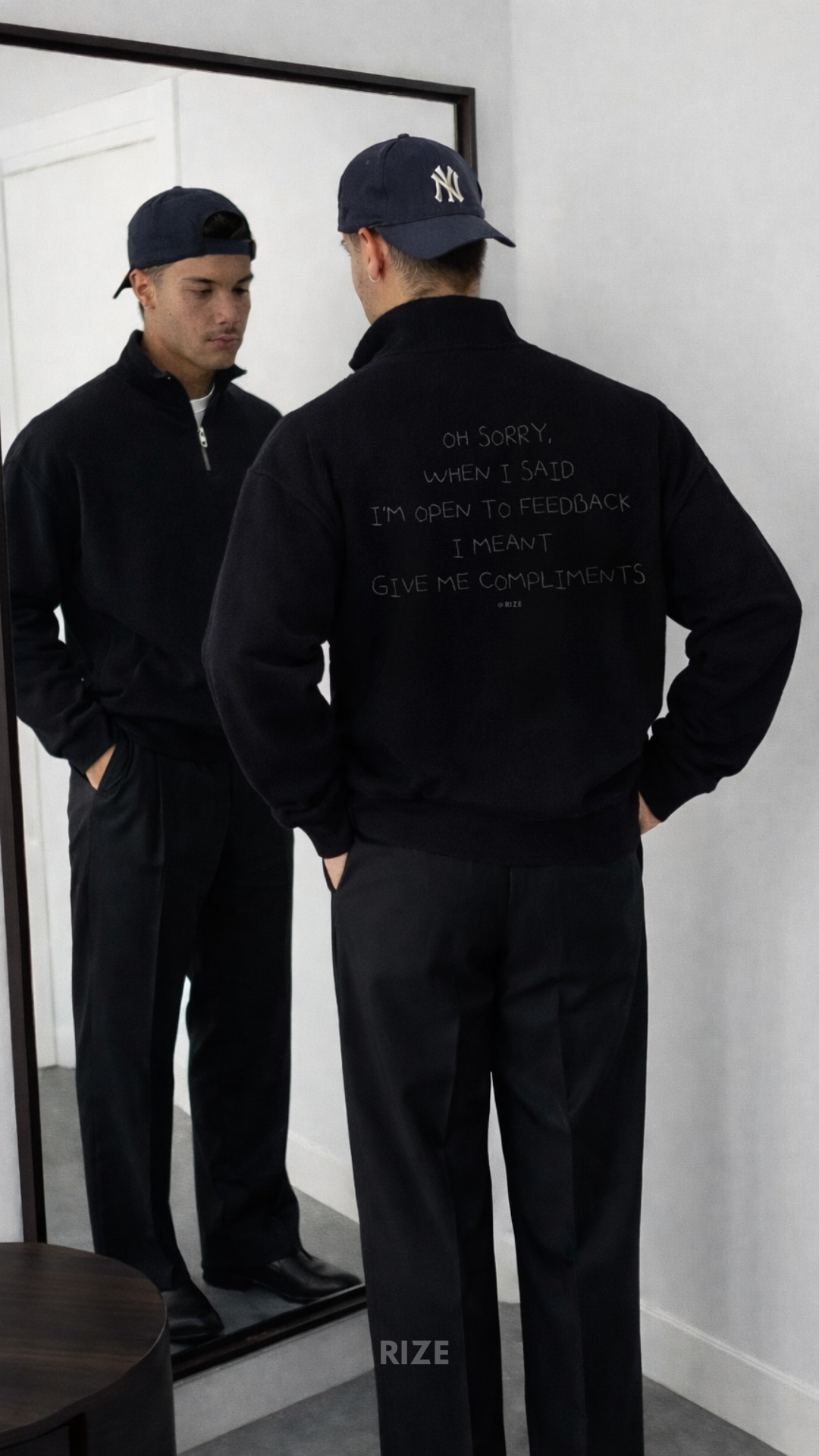 Nicht gemacht, um dich anzupassen. Sondern um dich selbst zu definieren. RIZE steht für Haltung. Für Menschen, die bewusst auftreten — nicht beiläufig. Handgefertigt in Deutschland — Wir veredeln jedes Piece selbst. Kein Fließband, sondern Handarbeit, die du spürst. 100 % Bio-Baumwolle. Substanz statt Kompromiss. Unsere Vielfalt ist dein Spielfeld. Finde das Design, das dich widerspiegelt. Trag nicht einfach eine Brand. Trag deine Entscheidung.